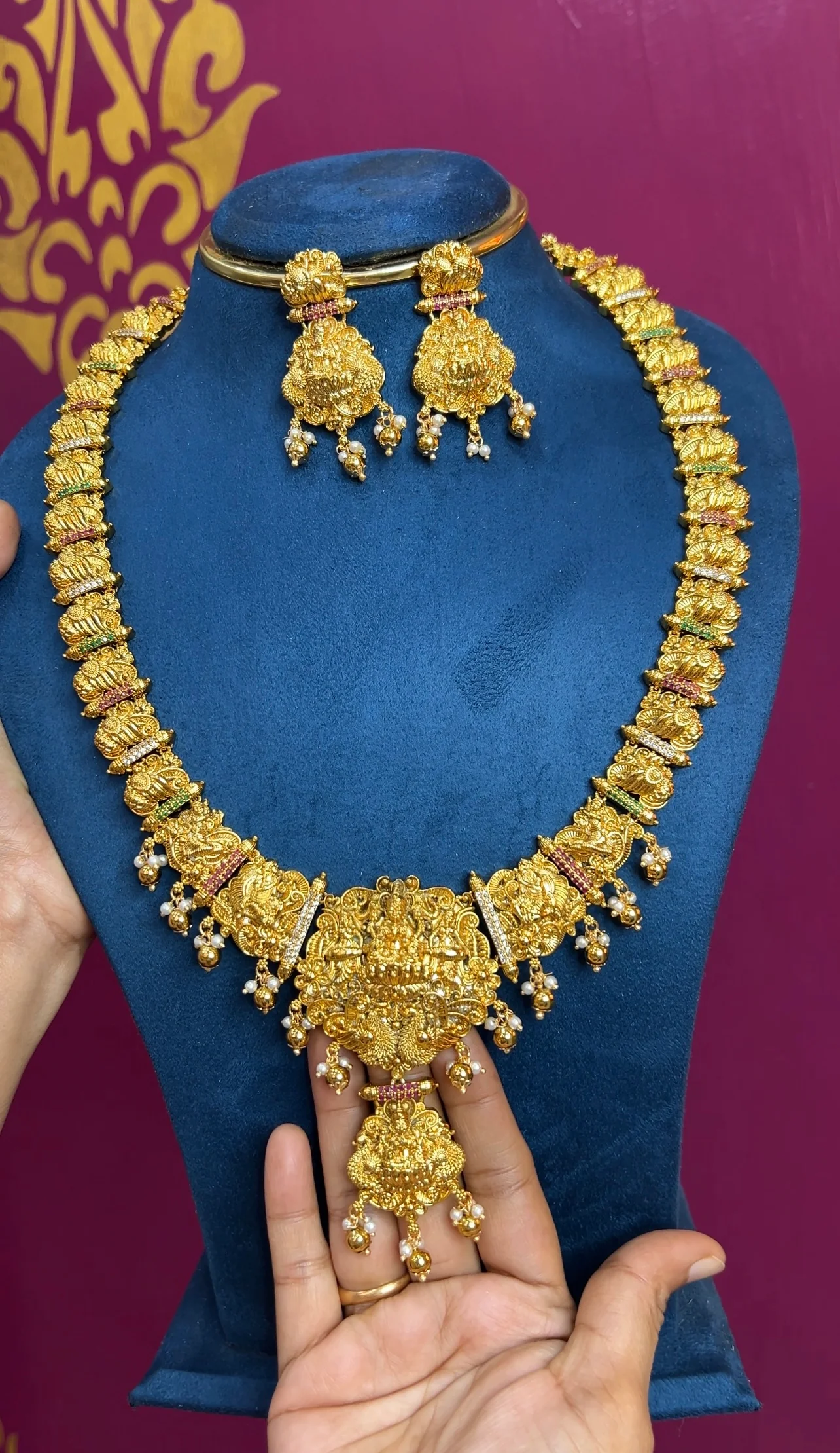 Laxshmi Haram CZ Beads and Gold Drops